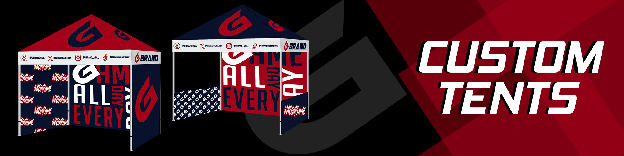 GBrand USA offers custom-branded pop-up tents that combine durability, ease of use, and high-impact visuals. Whether you're representing your team at a tournament, showcasing your brand at a trade show, or setting up at an outdoor event, our tents are designed to withstand the elements while promoting your brand with vibrant, eye-catching graphics.